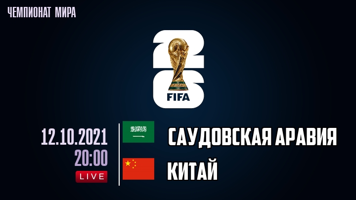 На данный момент в турнирной таблице Чемпионата мира по футболу Саудовская Аравия занимает 1-е место, а Китай занимает 1-е место .