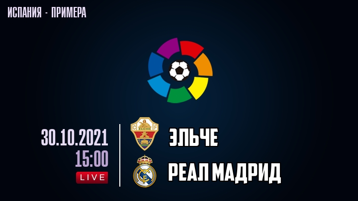 30 октября 2021 года, состоялась онлайн трансляция футбольного матча между футбольным клубом Эльче и футбольным клубом Реал Мадрид, проходящего в рамках чемпионата Испании.