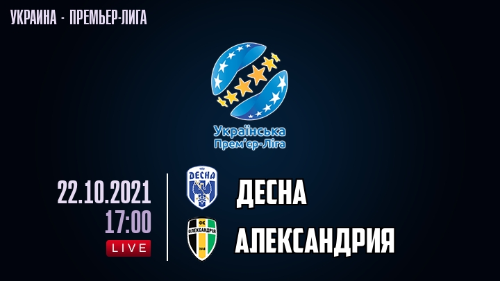 22 октября 2021 года, состоялась онлайн трансляция футбольного матча между футбольным клубом Десна и футбольным клубом Александрия, проходящего в рамках Премьер лиги Украины.