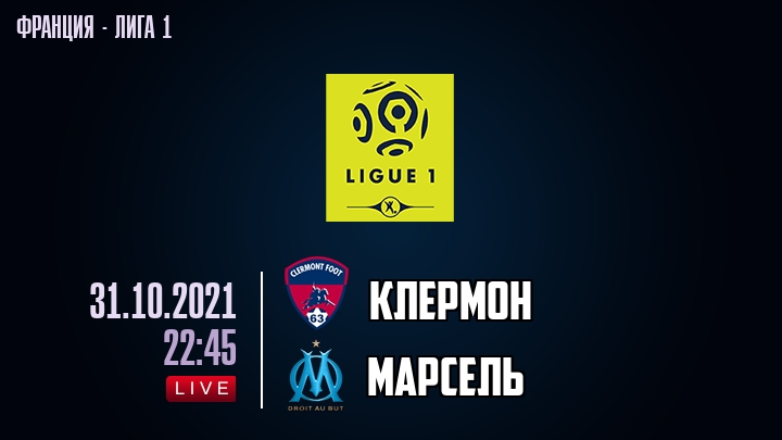 31 октября 2021 года, состоялась онлайн трансляция футбольного матча между футбольным клубом Клермон и футбольным клубом Марсель, проходящего в рамках Лиги 1 чемпионата Франция.
