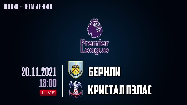 20 ноября 2021 года, состоялась онлайн трансляция футбольного матча между футбольным клубом Бернли и футбольным клубом Кристал Пэлас, проходящего в рамках Премьер лиги Англии.