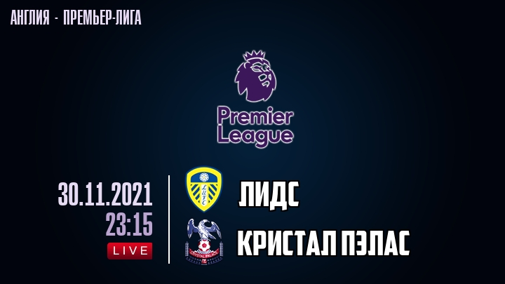 30 ноября 2021 года, состоялась онлайн трансляция футбольного матча между футбольным клубом Лидс и футбольным клубом Кристал Пэлас, проходящего в рамках Премьер лиги Англии.