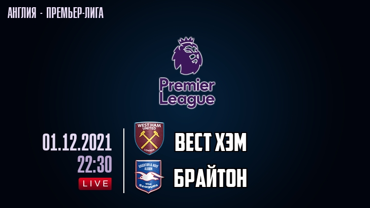 1 декабря 2021 года, состоялась онлайн трансляция футбольного матча между футбольным клубом Вест Хэм и футбольным клубом Брайтон, проходящего в рамках Премьер лиги Англии.