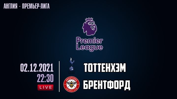2 декабря 2021 года, мы предлагаем посмотреть онлайн трансляцию футбольного матча между футбольным клубом Тоттенхэм и футбольным клубом Брентфорд, проходящего в рамках Премьер лиги Англии.