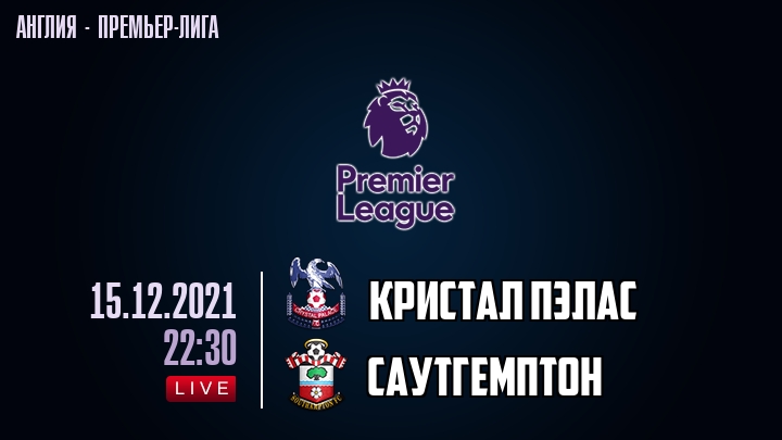 15 декабря 2021 года, состоялась онлайн трансляция футбольного матча между футбольным клубом Кристал Пэлас и футбольным клубом Саутгемптон, проходящего в рамках Премьер лиги Англии.