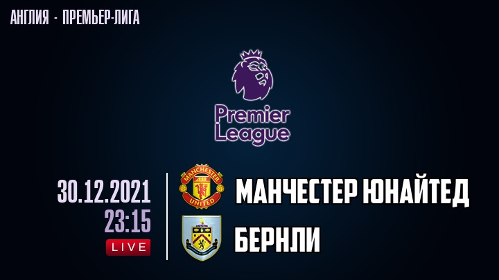 30 декабря 2021 года, состоялась онлайн трансляция футбольного матча между футбольным клубом Манчестер Юнайтед и футбольным клубом Бернли, проходящего в рамках Премьер лиги Англии.