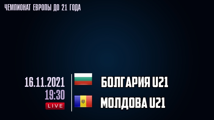16 ноября 2021 года, мы предлагаем посмотреть онлайн трансляцию футбольного матча между сборной Болгарии и сборной Молдова, проходящего в рамках Чемпионата Европы до 21 года.