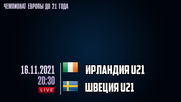 16 ноября 2021 года, мы предлагаем посмотреть онлайн трансляцию футбольного матча между сборной Ирландии и сборной Швеции, проходящего в рамках Чемпионата Европы до 21 года.
