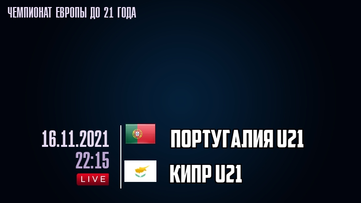 16 ноября 2021 года, мы предлагаем посмотреть онлайн трансляцию футбольного матча между сборной Португалии и сборной Кипра, проходящего в рамках Чемпионата Европы до 21 года.