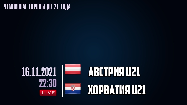 16 ноября 2021 года, мы предлагаем посмотреть онлайн трансляцию футбольного матча между сборной Австрии и сборной Хорватии, проходящего в рамках Чемпионата Европы до 21 года.