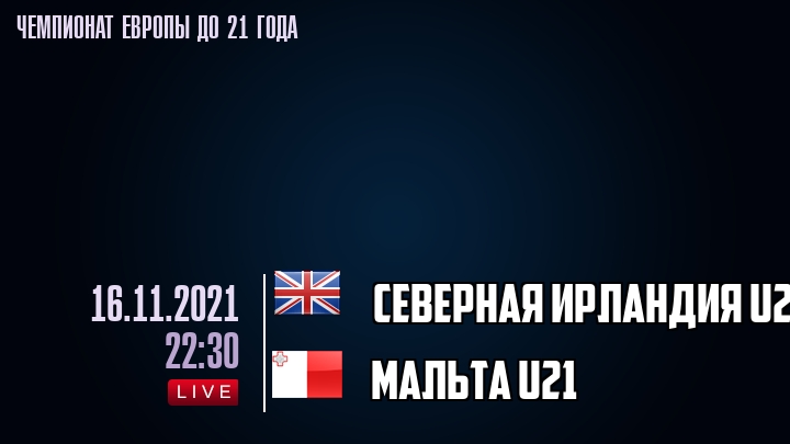 16 ноября 2021 года, мы предлагаем посмотреть онлайн трансляцию футбольного матча между футбольным клубом Северная Ирландия и футбольным клубом Мальты, проходящего в рамках Чемпионата Европы до 21 года.