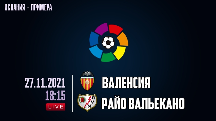 27 ноября 2021 года, состоялась онлайн трансляция футбольного матча между футбольным клубом Валенсия и футбольным клубом Райо Вальекано, проходящего в рамках чемпионата Испании.