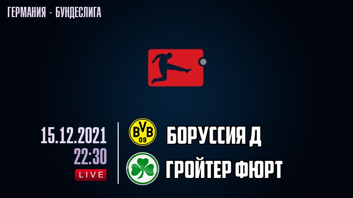 15 декабря 2021 года, состоялась онлайн трансляция футбольного матча между футбольным клубом Боруссия Д и футбольным клубом Гройтер Фюрт, проходящего в рамках Бундеслиги Германии.