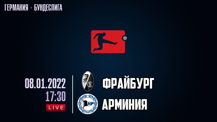 8 января 2022 года, состоялась онлайн трансляция футбольного матча между футбольным клубом Фрайбург и футбольным клубом Арминия, проходящего в рамках Бундеслиги Германии.