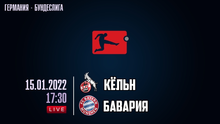 15 января 2022 года, состоялась онлайн трансляция футбольного матча между футбольным клубом Кльн и футбольным клубом Бавария, проходящего в рамках Бундеслиги Германии.