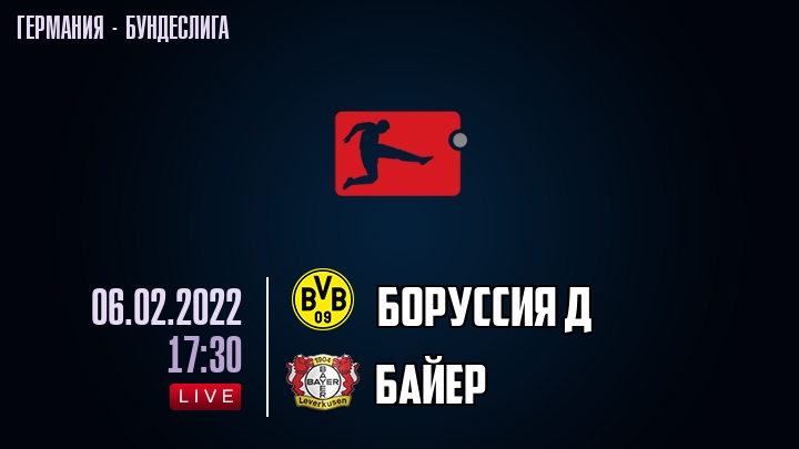 6 февраля 2022 года, состоялась онлайн трансляция футбольного матча между футбольным клубом Боруссия Д и футбольным клубом Байер, проходящего в рамках Бундеслиги Германии.
