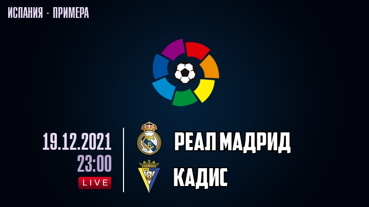 19 декабря 2021 года, состоялась онлайн трансляция футбольного матча между футбольным клубом Реал Мадрид и футбольным клубом Кадис, проходящего в рамках чемпионата Испании.