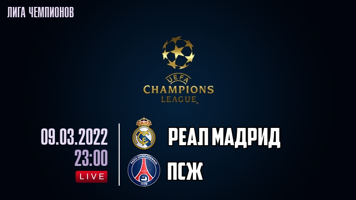 9 марта 2022 года, состоялась онлайн трансляция футбольного матча между футбольным клубом Реал Мадрид и футбольным клубом ПСЖ, проходящего в рамках Лиги Чемпионов.