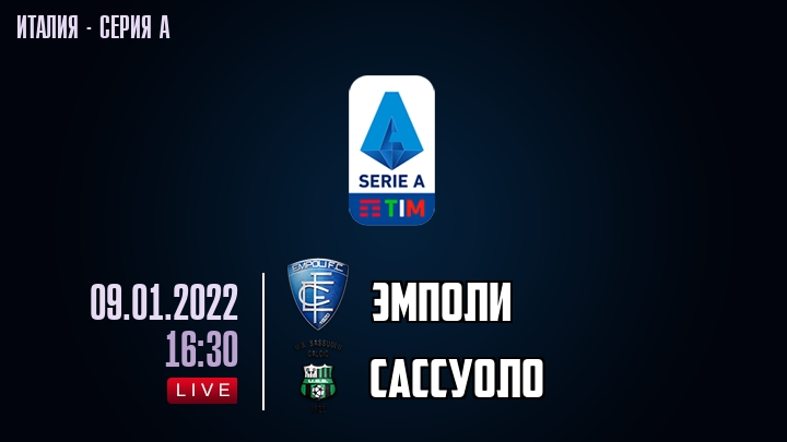 9 января 2022 года, состоялась онлайн трансляция футбольного матча между футбольным клубом Эмполи и футбольным клубом Сассуоло, проходящего в рамках Серии А чемпионата Италии.