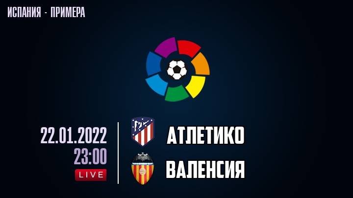 22 января 2022 года, состоялась онлайн трансляция футбольного матча между футбольным клубом Атлетико и футбольным клубом Валенсия, проходящего в рамках чемпионата Испании.