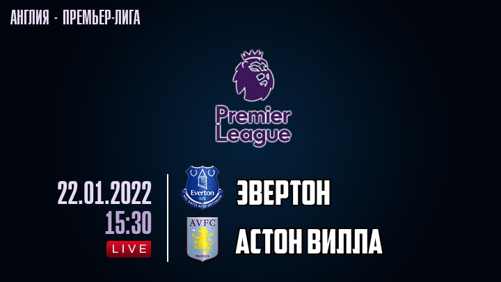 22 января 2022 года, состоялась онлайн трансляция футбольного матча между футбольным клубом Эвертон и футбольным клубом Астон Вилла, проходящего в рамках Премьер лиги Англии.