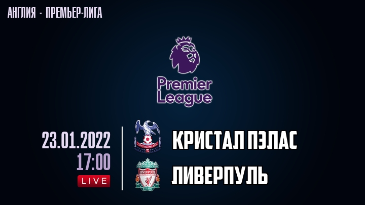 23 января 2022 года, состоялась онлайн трансляция футбольного матча между футбольным клубом Кристал Пэлас и футбольным клубом Ливерпуль, проходящего в рамках Премьер лиги Англии.