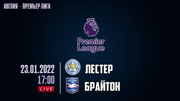 23 января 2022 года, состоялась онлайн трансляция футбольного матча между футбольным клубом Лестер и футбольным клубом Брайтон, проходящего в рамках Премьер лиги Англии.