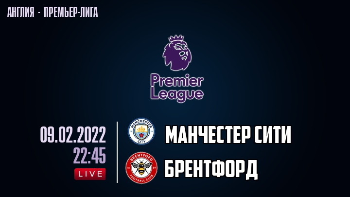 9 февраля 2022 года, состоялась онлайн трансляция футбольного матча между футбольным клубом Манчестер Сити и футбольным клубом Брентфорд, проходящего в рамках Премьер лиги Англии.