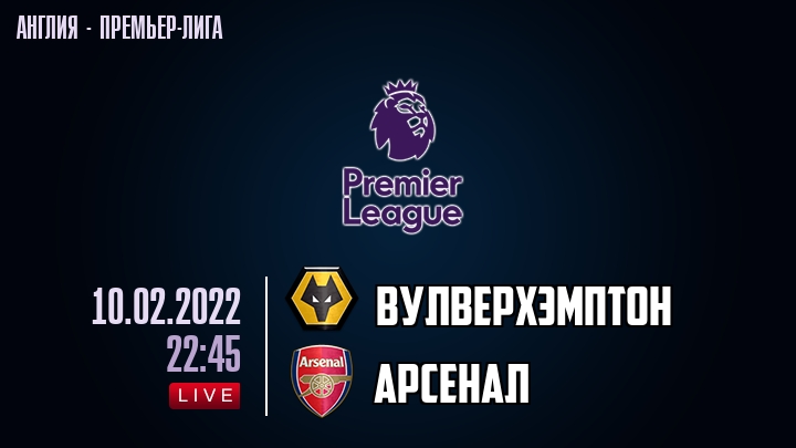 10 февраля 2022 года, состоялась онлайн трансляция футбольного матча между футбольным клубом Вулверхэмптон и футбольным клубом Арсенал, проходящего в рамках Премьер лиги Англии.