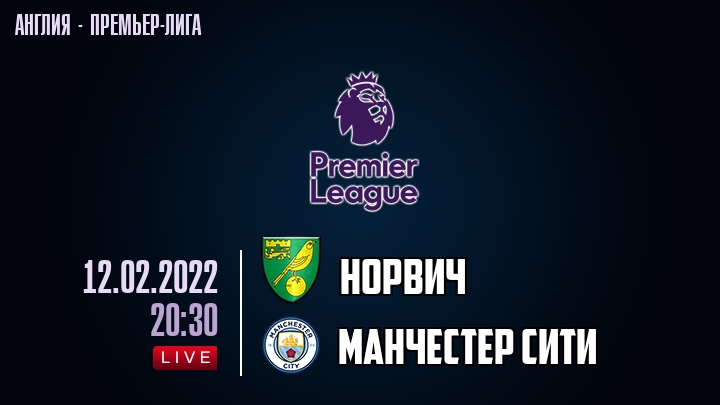 12 февраля 2022 года, состоялась онлайн трансляция футбольного матча между футбольным клубом Норвич и футбольным клубом Манчестер Сити, проходящего в рамках Премьер лиги Англии.