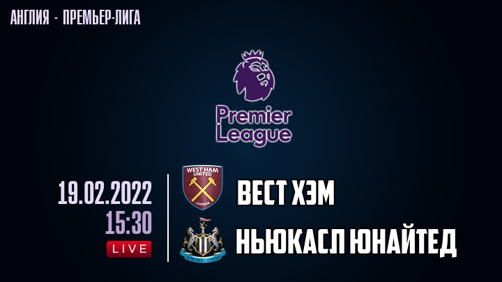 19 февраля 2022 года, состоялась онлайн трансляция футбольного матча между футбольным клубом Вест Хэм и футбольным клубом Ньюкасл Юнайтед, проходящего в рамках Премьер лиги Англии.