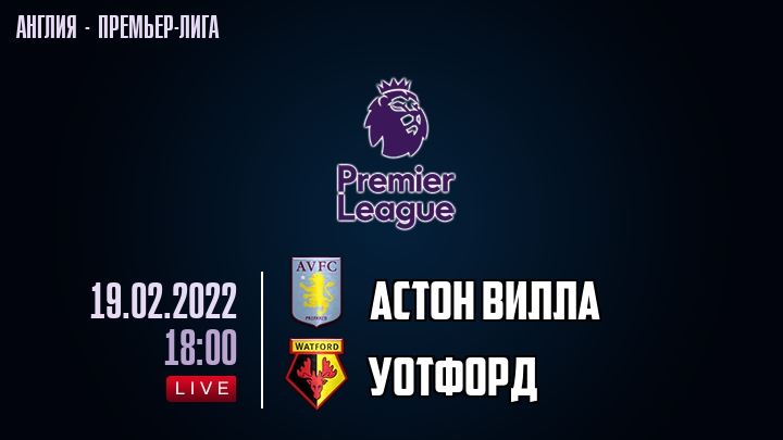 19 февраля 2022 года, состоялась онлайн трансляция футбольного матча между футбольным клубом Астон Вилла и футбольным клубом Уотфорд, проходящего в рамках Премьер лиги Англии.