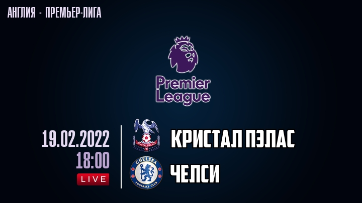 19 февраля 2022 года, состоялась онлайн трансляция футбольного матча между футбольным клубом Кристал Пэлас и футбольным клубом Челси, проходящего в рамках Премьер лиги Англии.