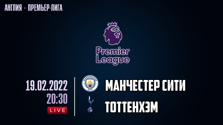 19 февраля 2022 года, состоялась онлайн трансляция футбольного матча между футбольным клубом Манчестер Сити и футбольным клубом Тоттенхэм, проходящего в рамках Премьер лиги Англии.