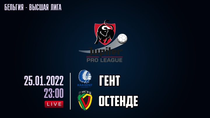 25 января 2022 года, состоялась онлайн трансляция футбольного матча между футбольным клубом Гент и футбольным клубом Остенде, проходящего в рамках Высшей лиги Бельгии.