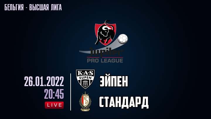 26 января 2022 года, состоялась онлайн трансляция футбольного матча между футбольным клубом Эйпен и футбольным клубом Стандард, проходящего в рамках Высшей лиги Бельгии.