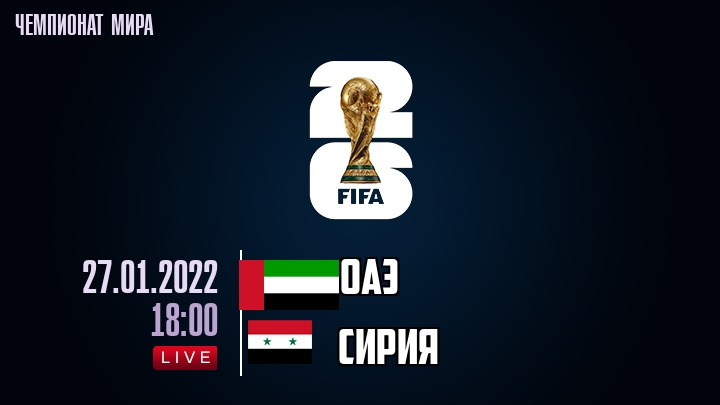 27 января 2022 года, состоялась онлайн трансляция футбольного матча между сборной ОАЭ и сборной Сирии, проходящего в рамках Чемпионата мира по футболу.