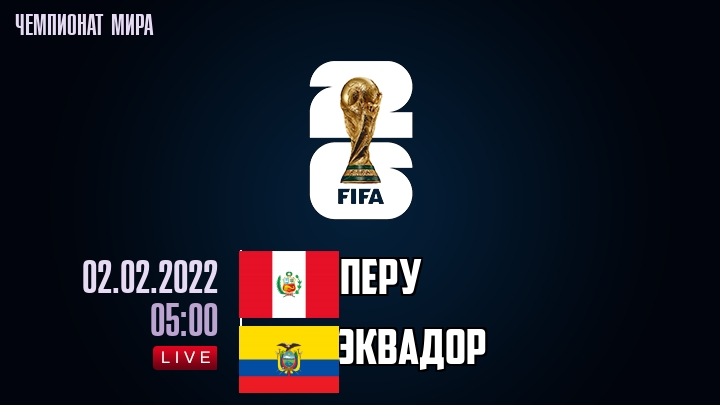 2 февраля 2022 года, состоялась онлайн трансляция футбольного матча между сборной Перу и сборной Эквадора, проходящего в рамках Чемпионата мира по футболу.