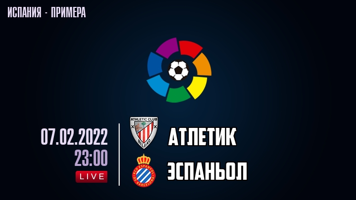 7 февраля 2022 года, состоялась онлайн трансляция футбольного матча между футбольным клубом Атлетик и футбольным клубом Эспаньол, проходящего в рамках чемпионата Испании.