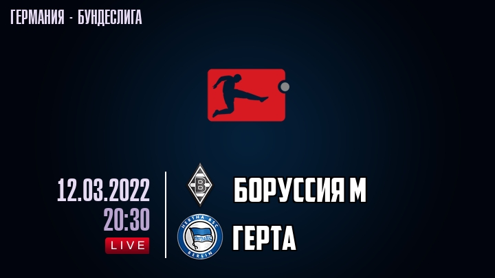 12 марта 2022 года, состоялась онлайн трансляция футбольного матча между футбольным клубом Боруссия М и футбольным клубом Герта, проходящего в рамках Бундеслиги Германии.