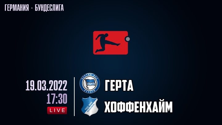 19 марта 2022 года, состоялась онлайн трансляция футбольного матча между футбольным клубом Герта и футбольным клубом Хоффенхайм, проходящего в рамках Бундеслиги Германии.