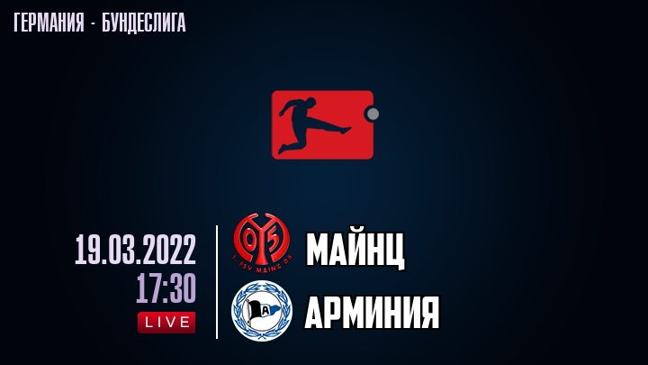 19 марта 2022 года, состоялась онлайн трансляция футбольного матча между футбольным клубом Майнц и футбольным клубом Арминия, проходящего в рамках Бундеслиги Германии.
