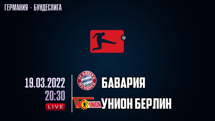 19 марта 2022 года, состоялась онлайн трансляция футбольного матча между футбольным клубом Бавария и футбольным клубом Унион Берлин, проходящего в рамках Бундеслиги Германии.