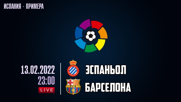 13 февраля 2022 года, состоялась онлайн трансляция футбольного матча между футбольным клубом Эспаньол и футбольным клубом Барселона, проходящего в рамках чемпионата Испании.