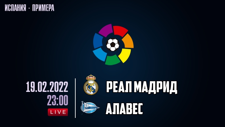 19 февраля 2022 года, состоялась онлайн трансляция футбольного матча между футбольным клубом Реал Мадрид и футбольным клубом Алавес, проходящего в рамках чемпионата Испании.