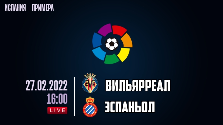 27 февраля 2022 года, состоялась онлайн трансляция футбольного матча между футбольным клубом Вильярреал и футбольным клубом Эспаньол, проходящего в рамках чемпионата Испании.