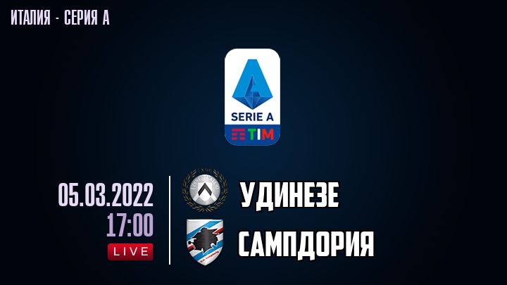 5 марта 2022 года, состоялась онлайн трансляция футбольного матча между футбольным клубом Удинезе и футбольным клубом Сампдория, проходящего в рамках Серии А чемпионата Италии.