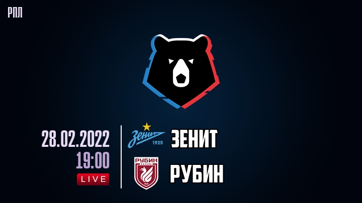 28 февраля 2022 года, состоялась онлайн трансляция футбольного матча между футбольным клубом Зенит и футбольным клубом Рубин, проходящего в рамках чемпионата РПЛ.