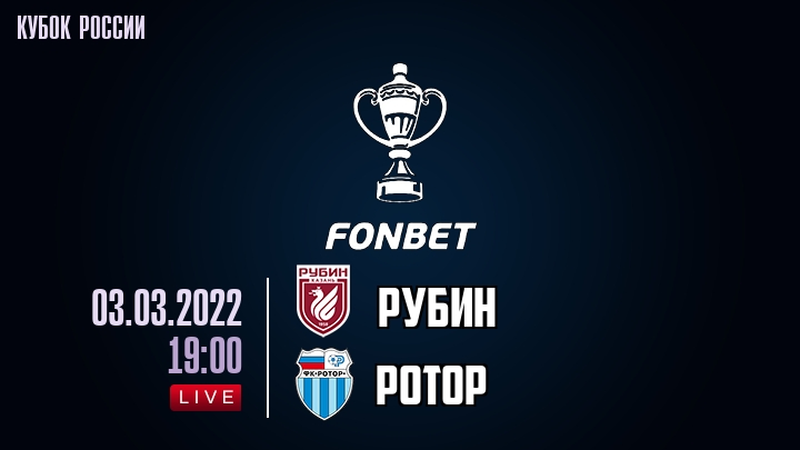 3 марта 2022 года, состоялась онлайн трансляция футбольного матча между футбольным клубом Рубин и футбольным клубом Ротор, проходящего в рамках Кубка России.