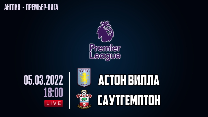 5 марта 2022 года, состоялась онлайн трансляция футбольного матча между футбольным клубом Астон Вилла и футбольным клубом Саутгемптон, проходящего в рамках Премьер лиги Англии.